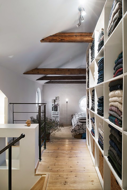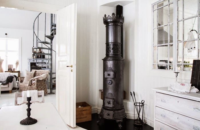 Y dicho esto, os traigo hoy, una preciosa casa sueca del 1914 y reformada en el 2010. Es una construcción muy especial, con torreón a doble altura, donde se ha ubicado el baño con una preciosa bañera exenta, hay varias chimeneas para combatir el frío invernal.